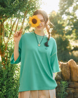 胸元にひまわり君となんにも君(仮)のワンポイント刺繍入り。
