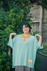 Nan2MoらしいPOPな配色が目を引くワッフルポロシャツ。