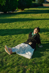 裾にはキービジュアルのイラストをあしらい、遊び心たっぷり。