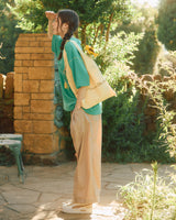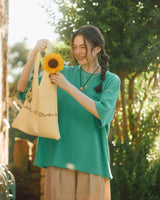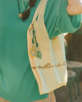 コンセプトの“ひまわり”に合わせた、夏らしいカラーのニットバッグ。