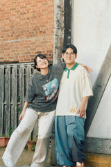 プリント部分はクラック加工を施し、古着のような風合いに。