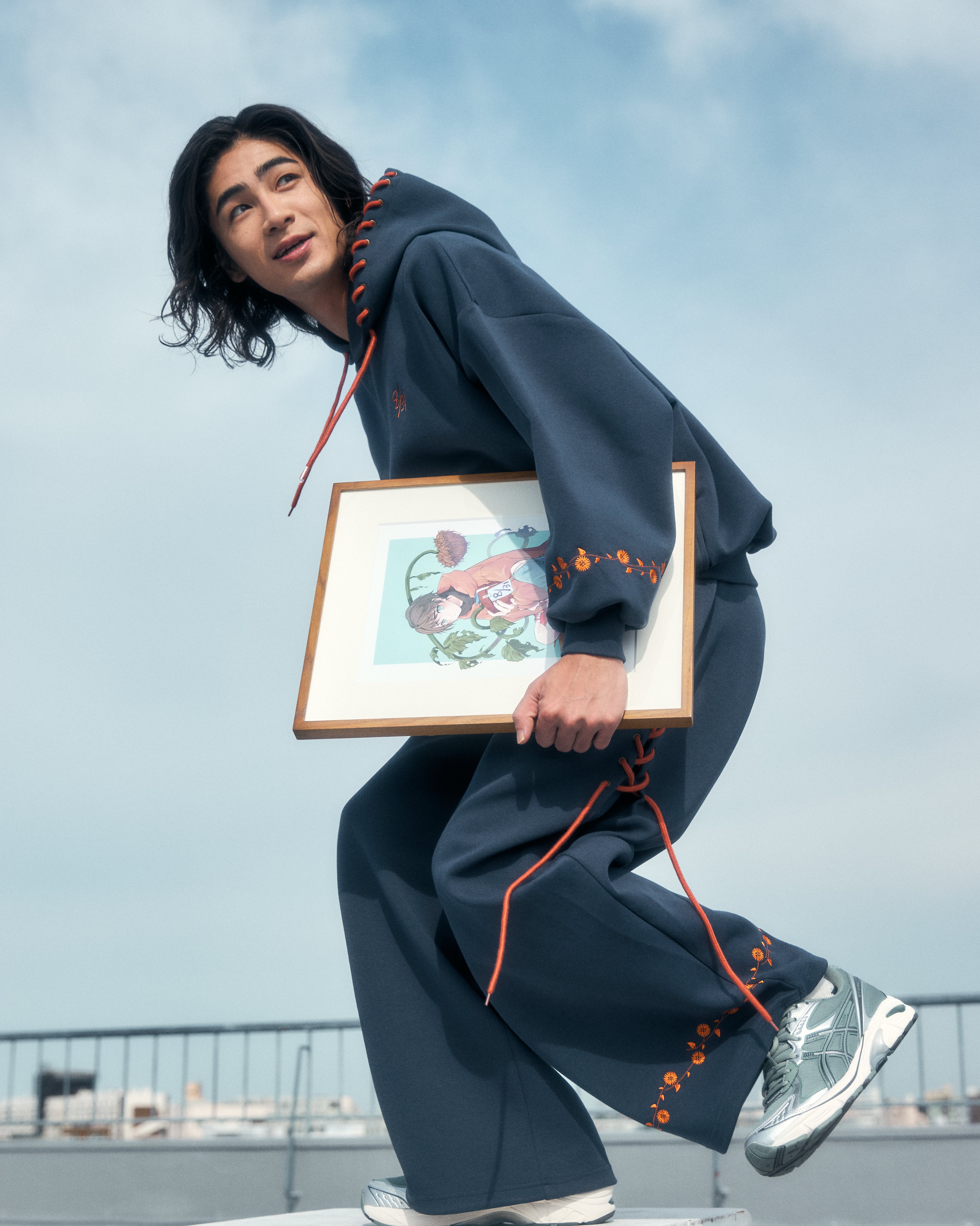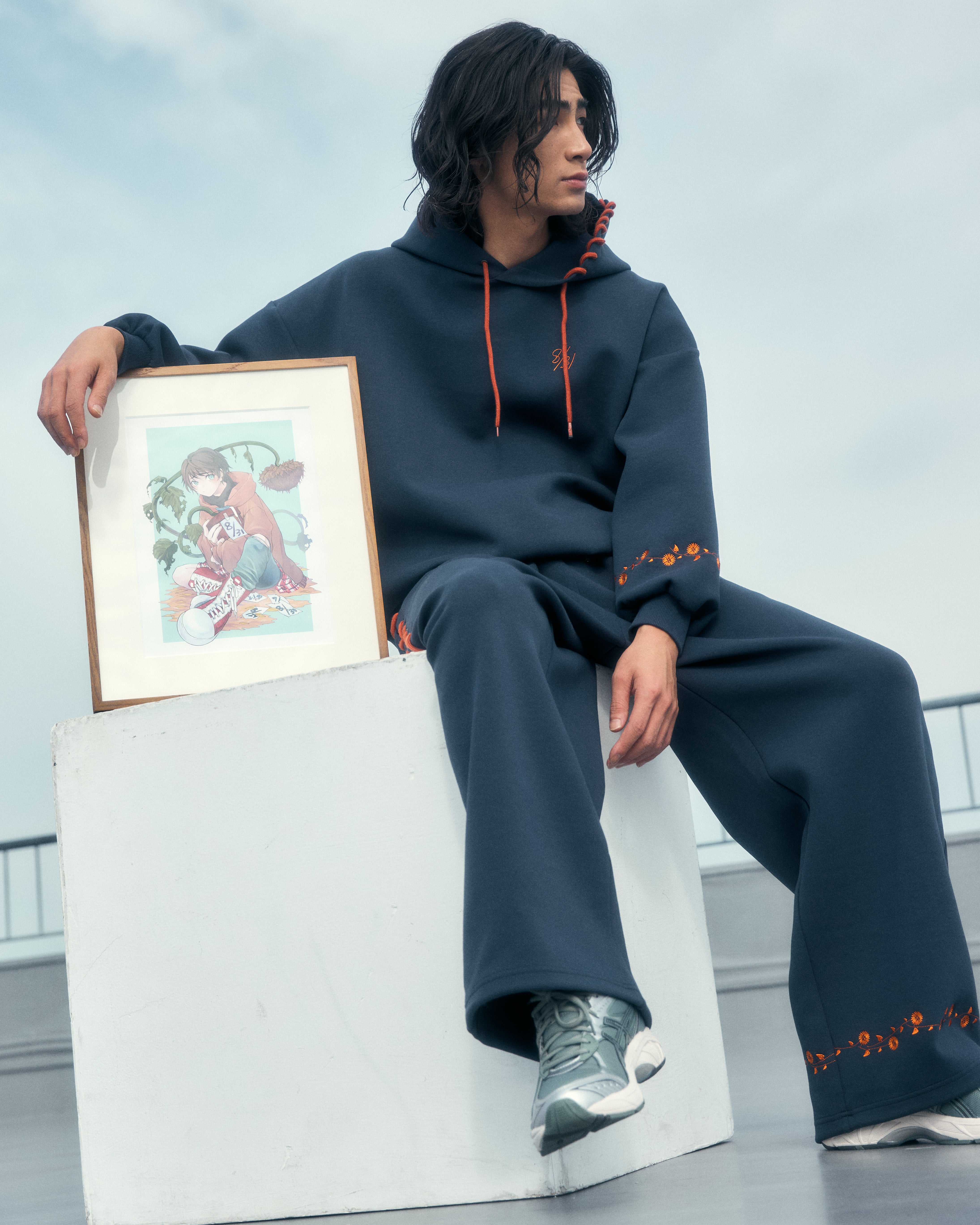 さやのイラスト「夏終わりくん」から着想を得たスウェットパンツ。