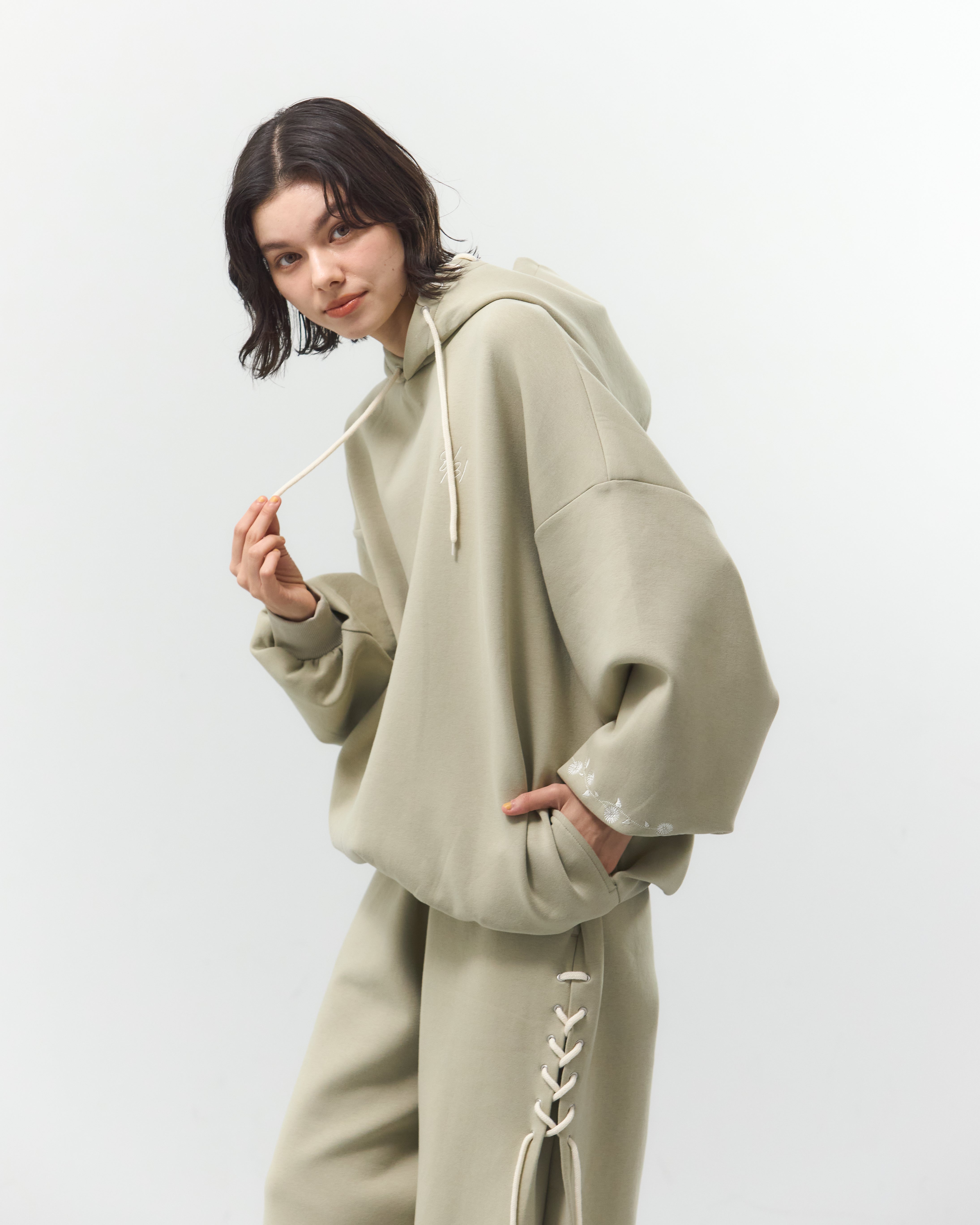 パーカーとセットアップでの着用もおすすめです。