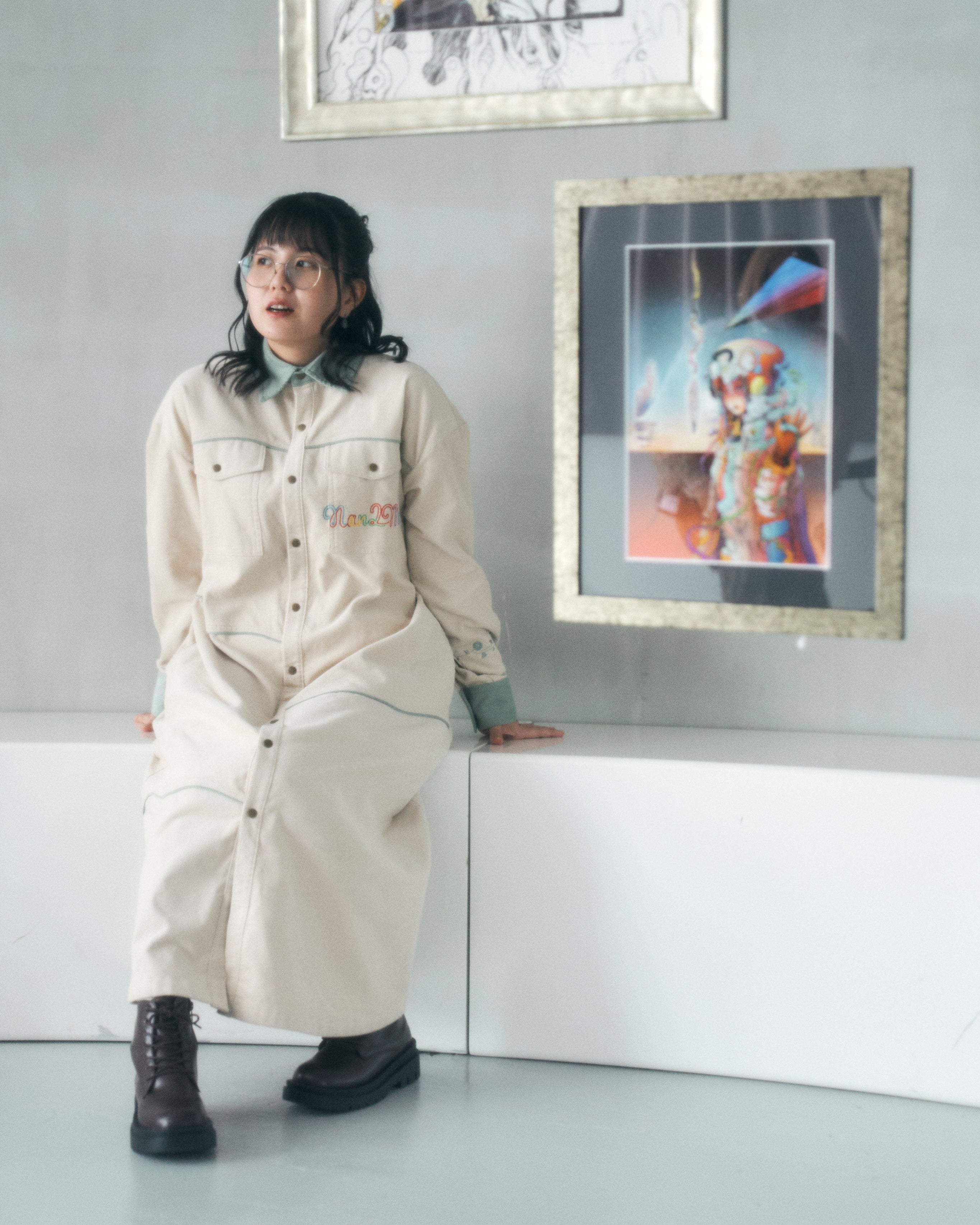 げんのイラスト「最果ての兎」をもとにデザインしたコーデュロイワンピース。
