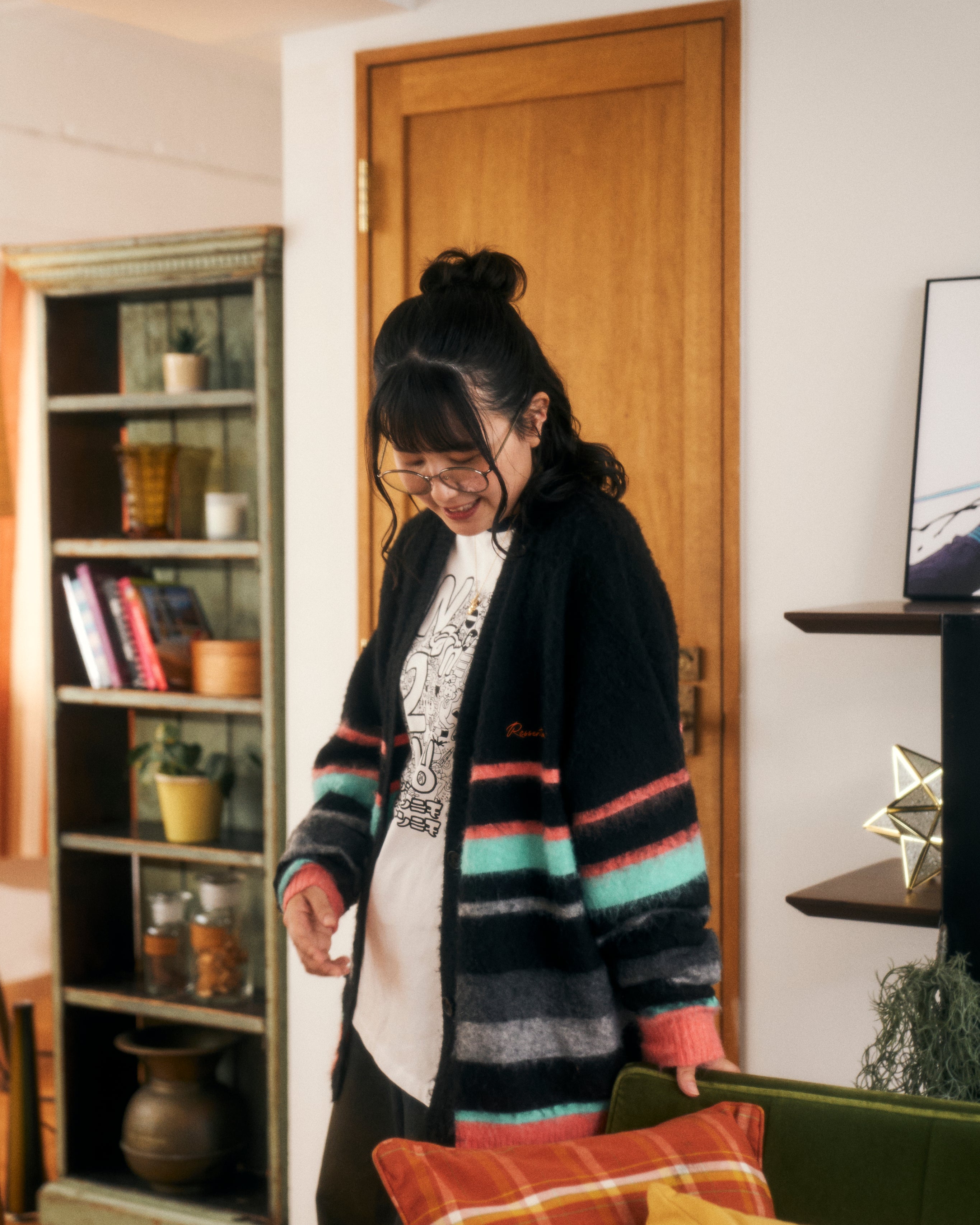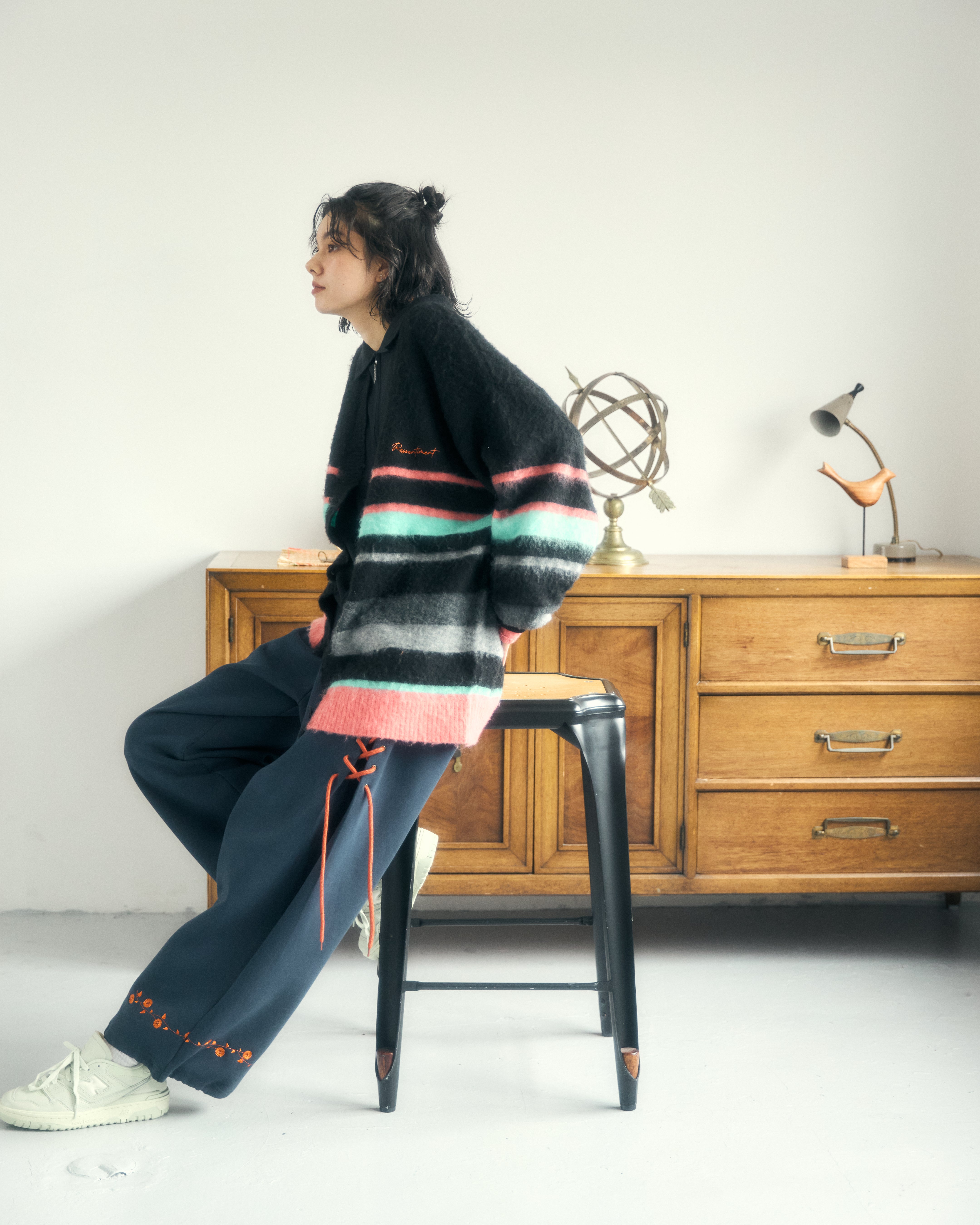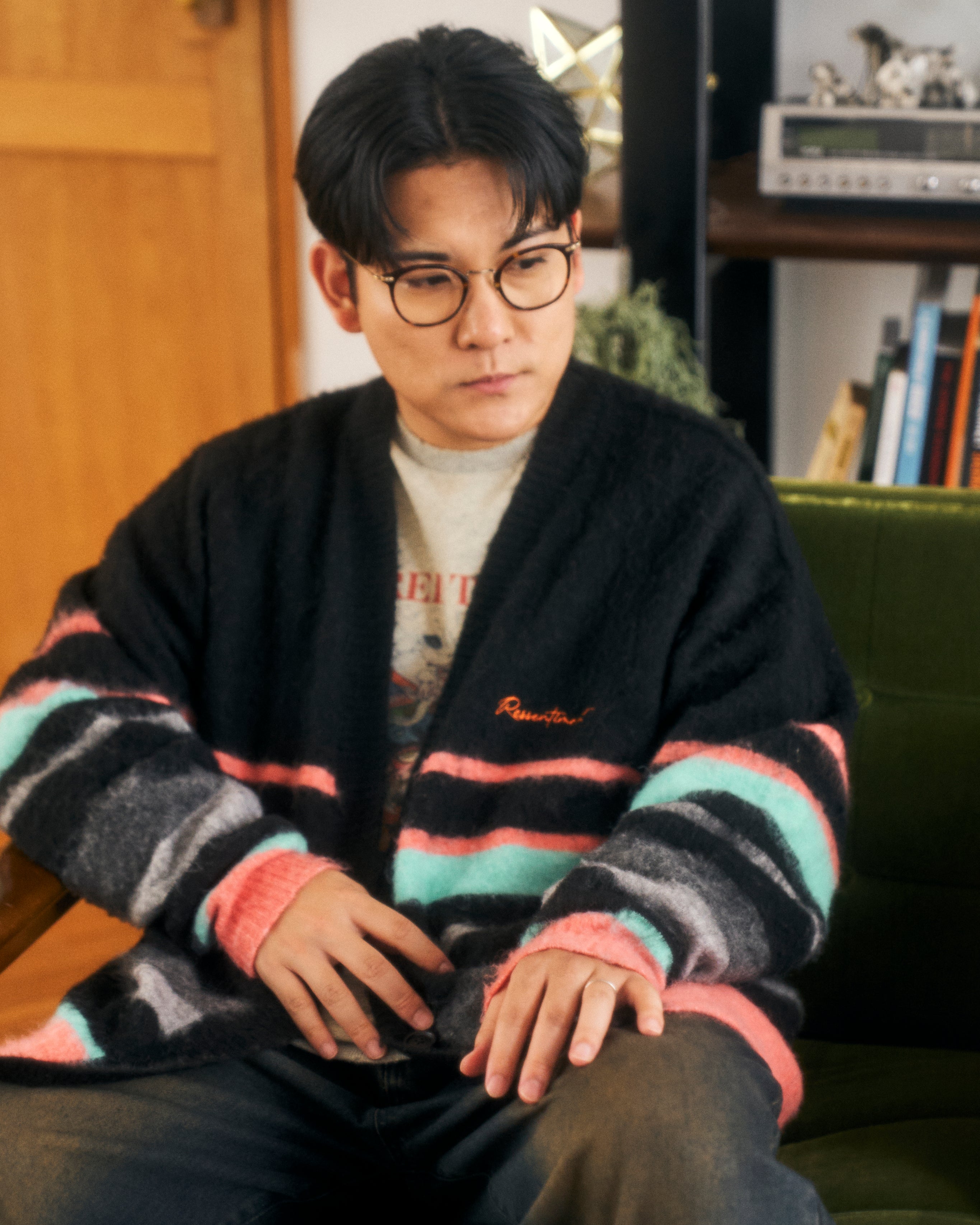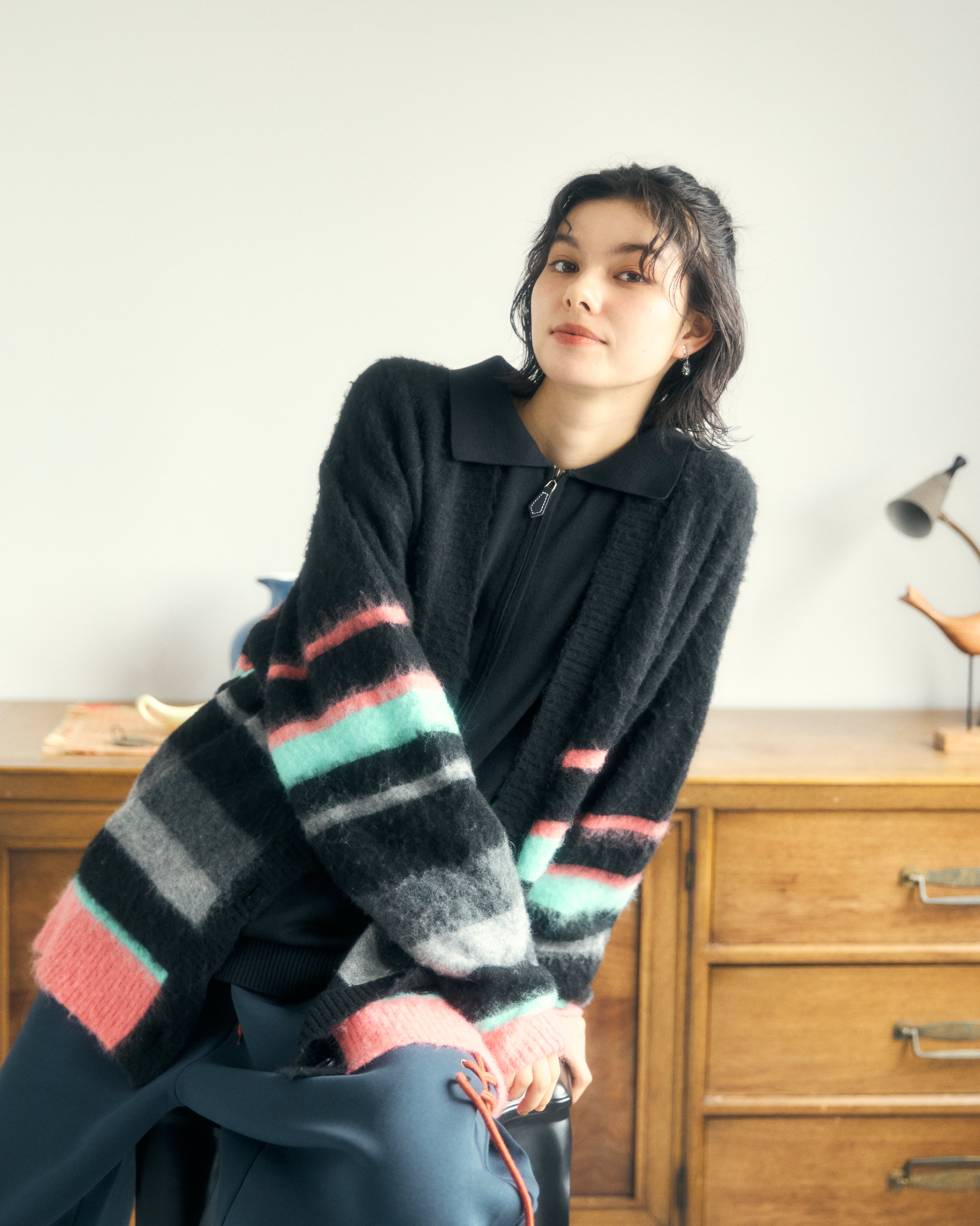 げんのイラスト「ルサンチマン」から着想を得たモヘアカーディガン。