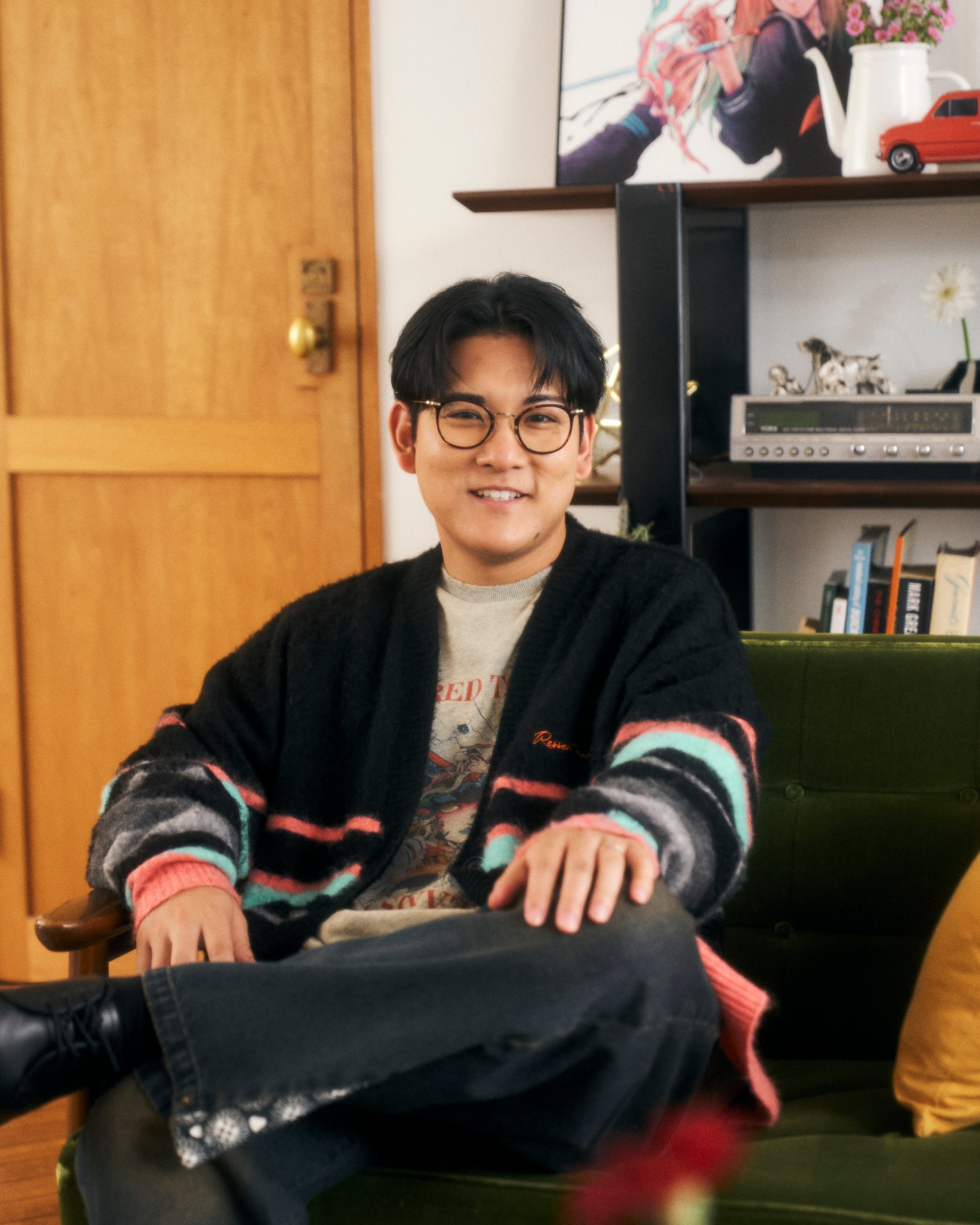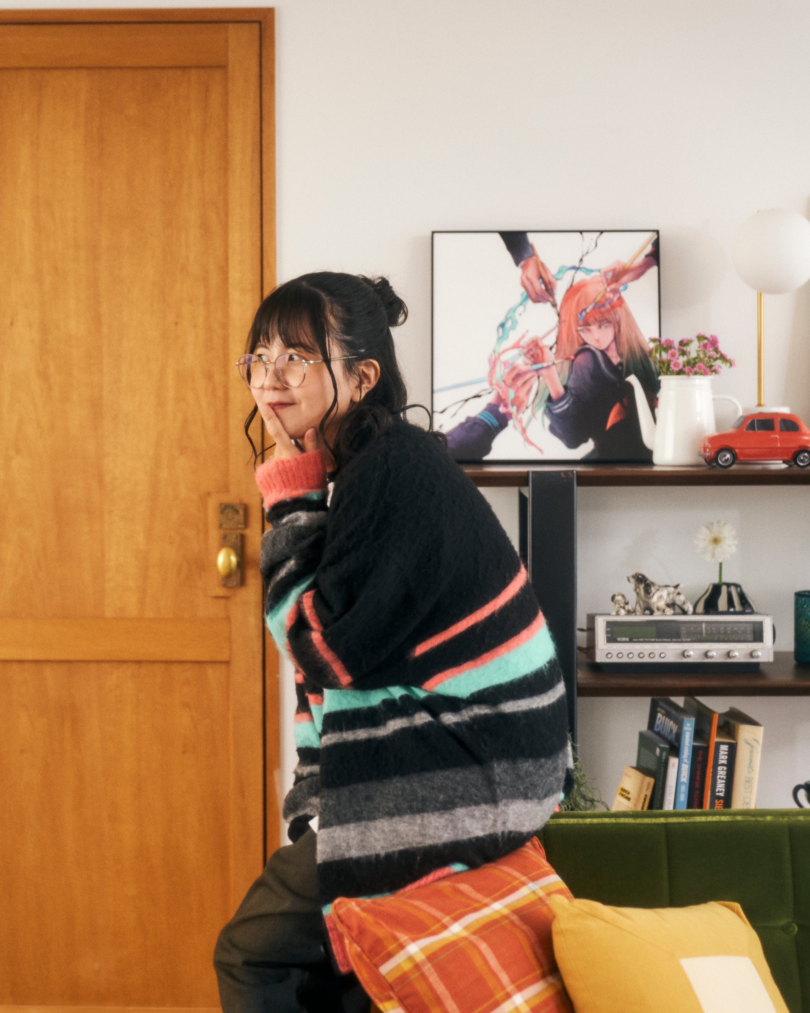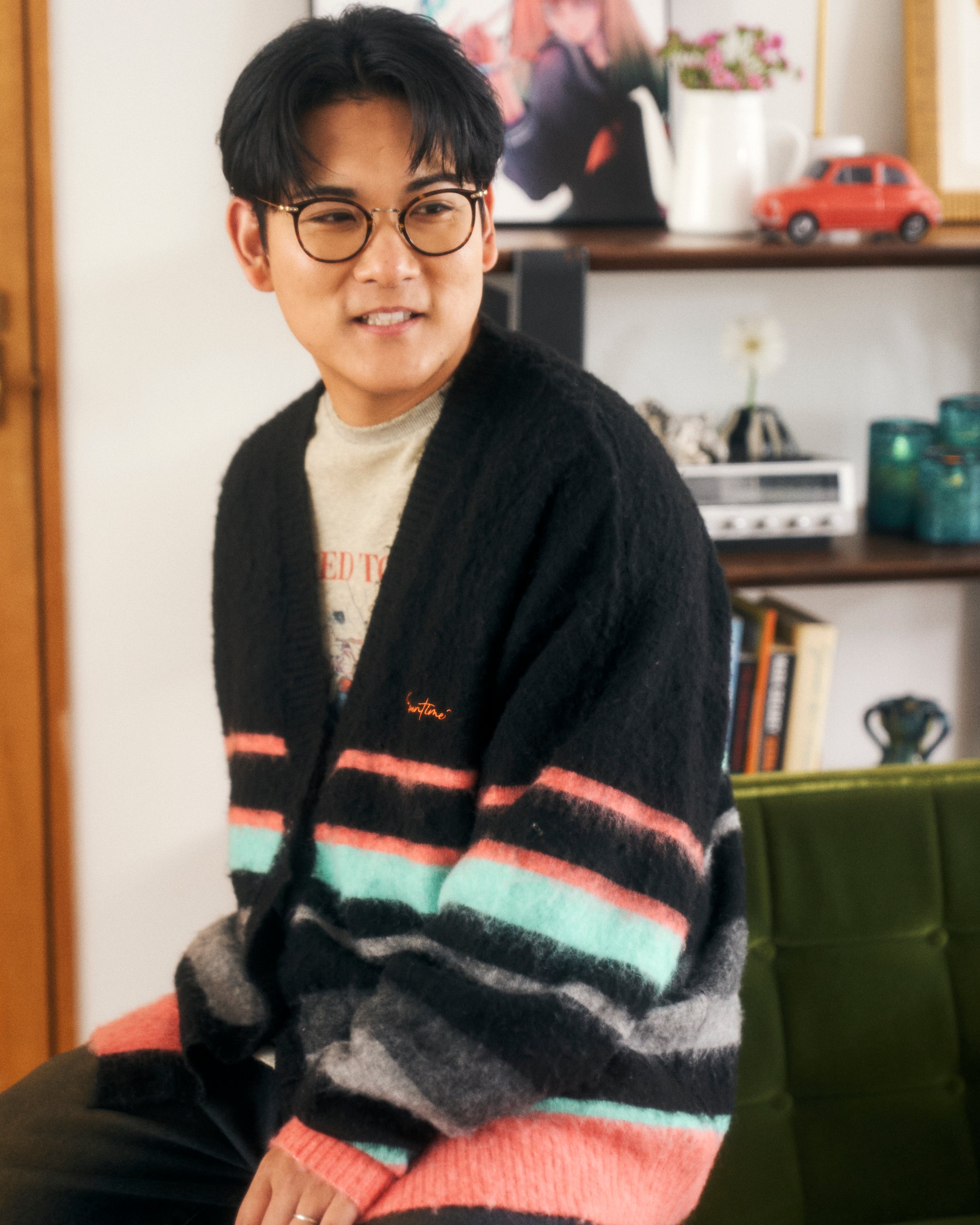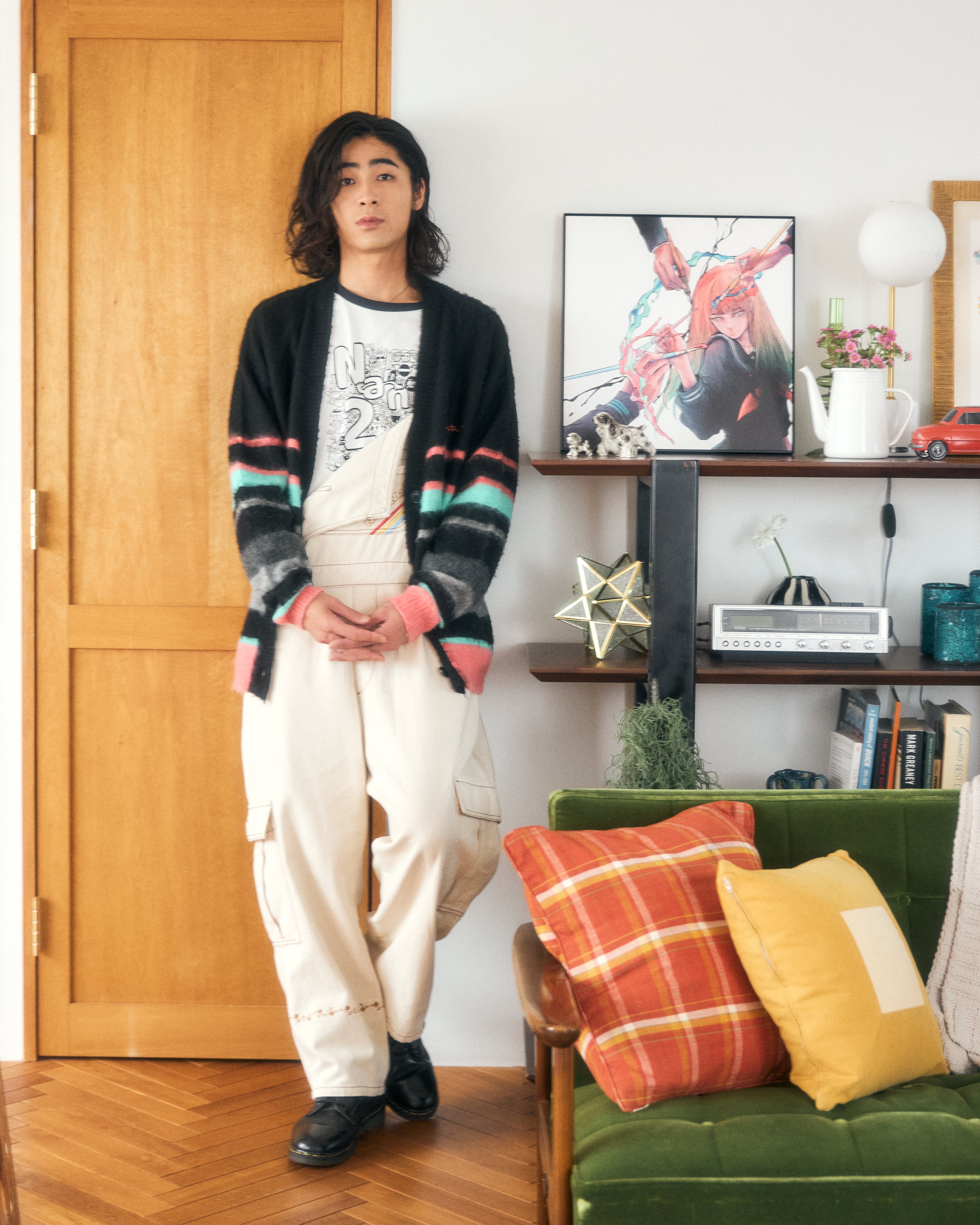 げんのイラスト「ルサンチマン」から着想を得たモヘアカーディガン。
