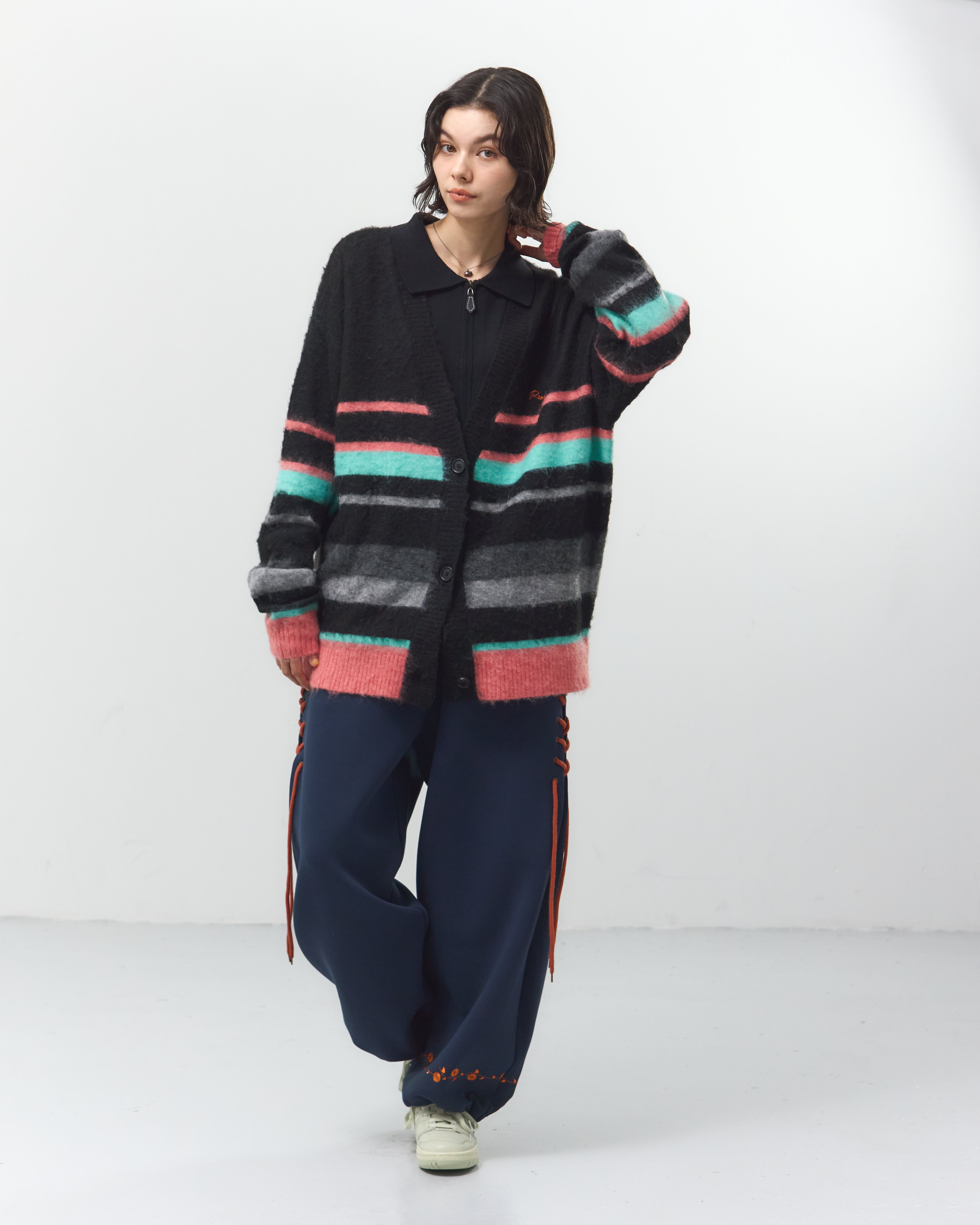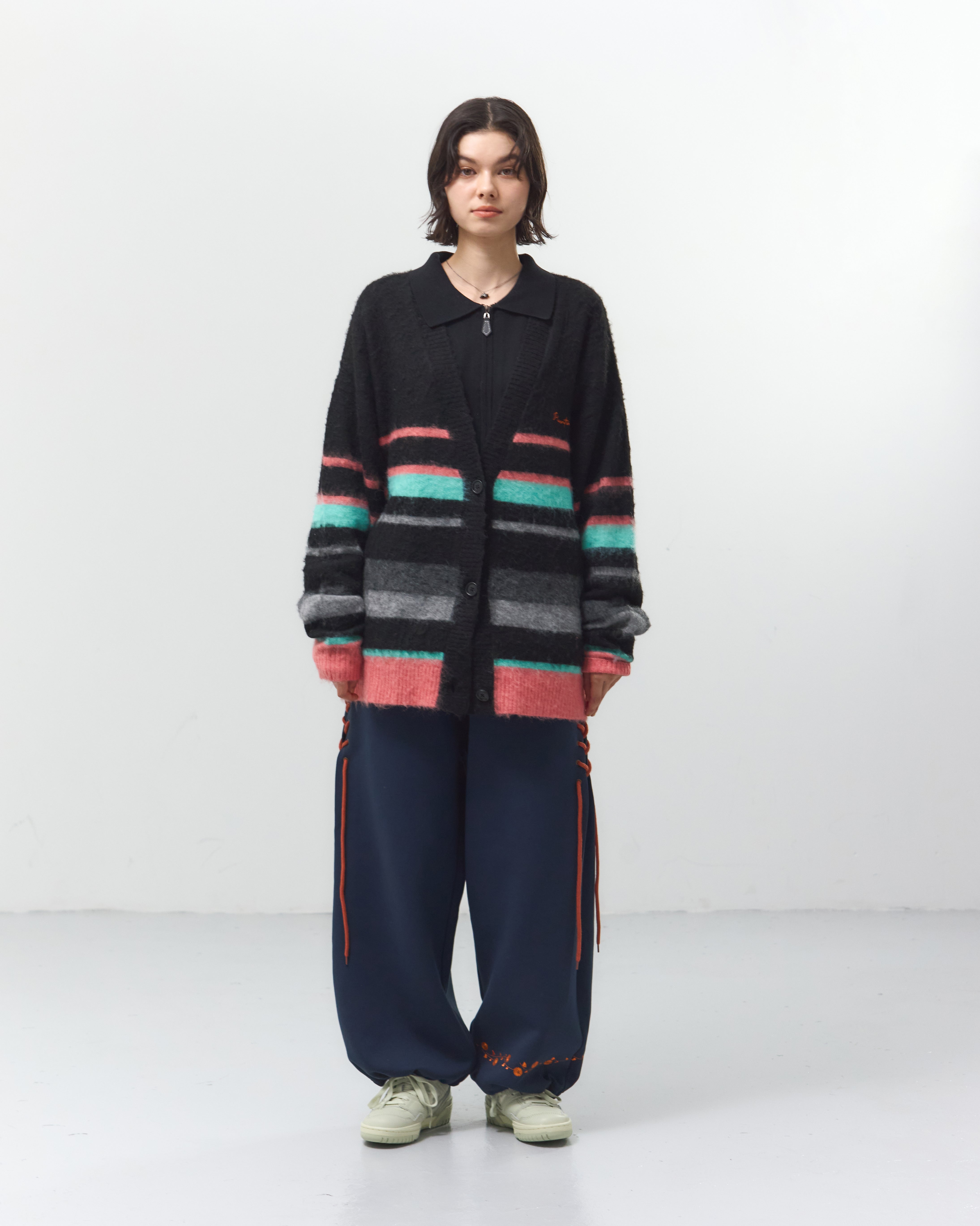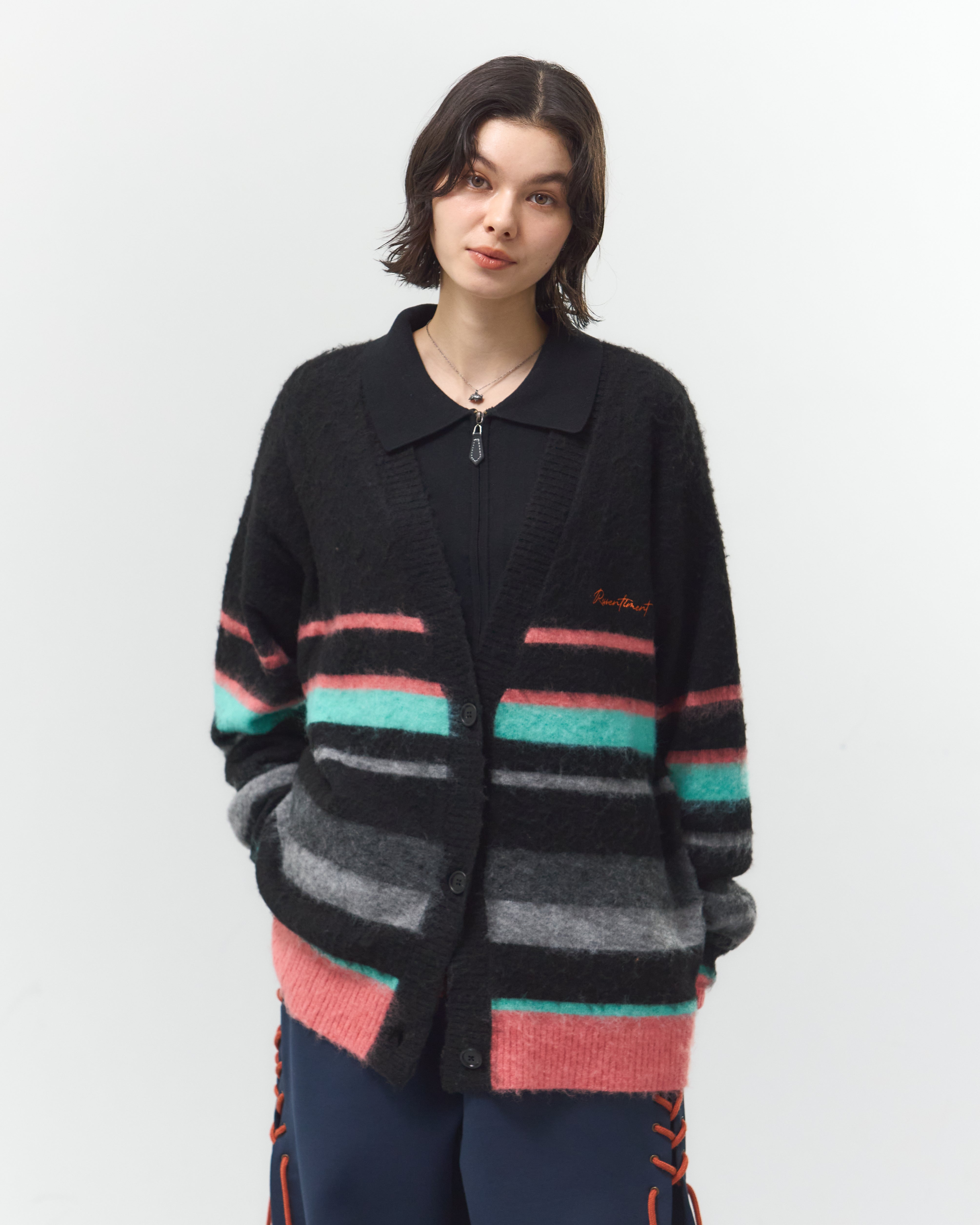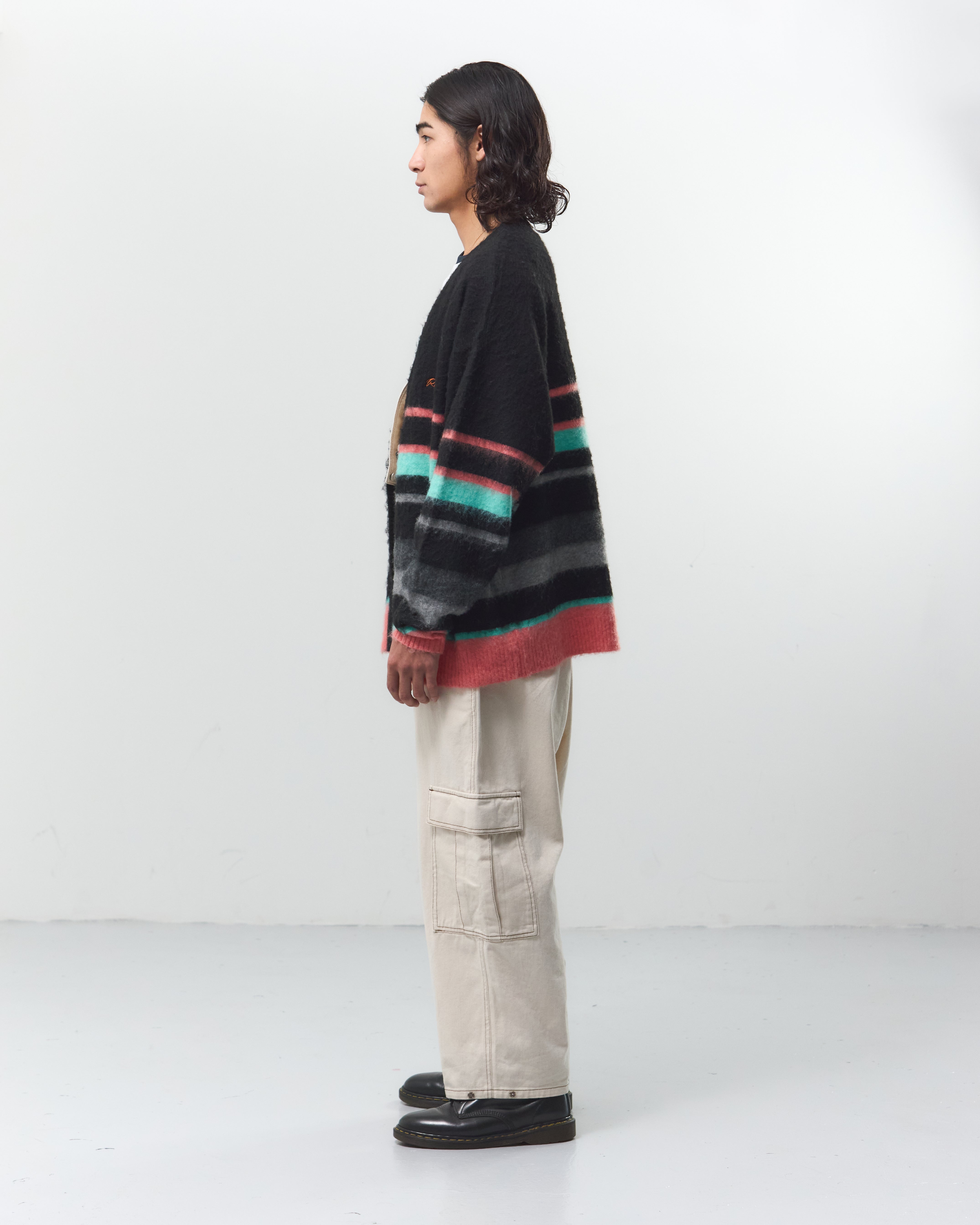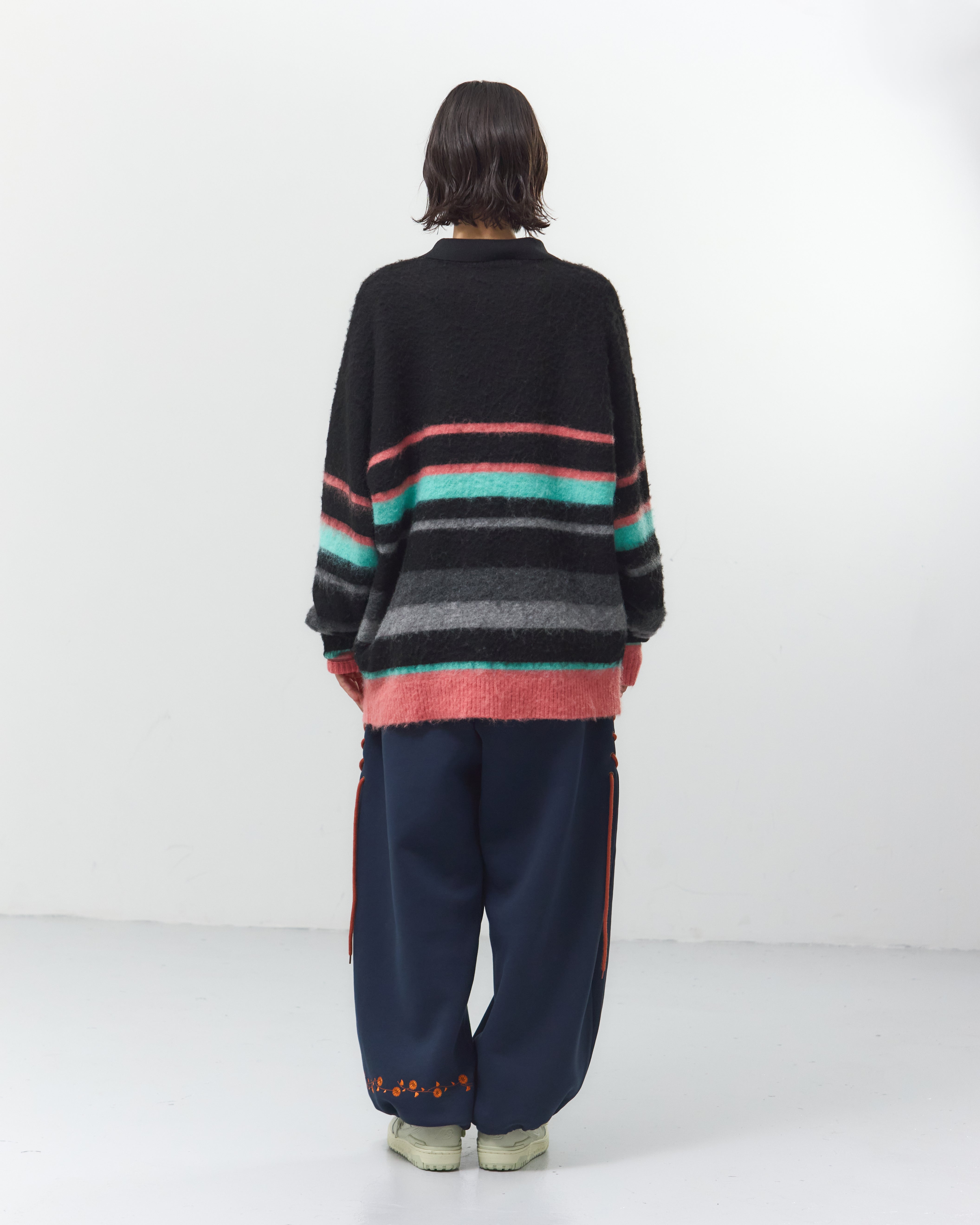 げん自ら配色デザインを作成し、ビビットなカラーで存在感を出しながらも攻めすぎていないバランス調整にこだわりました。ふわっと軽く柔らかいモヘア素材で肌触りも抜群。